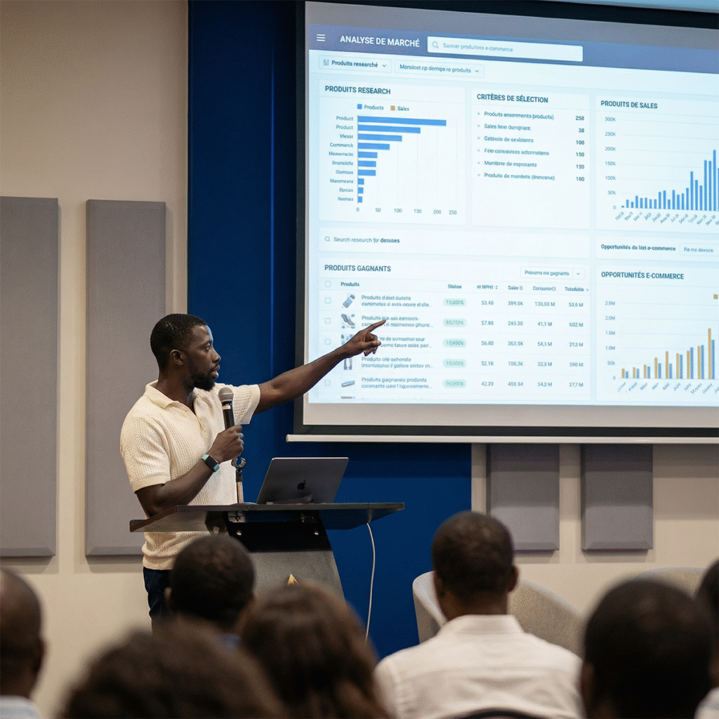 Créer ton entreprise, lancer ta boutique en ligne et atteindre ton premier 1.000.000 fcfa de chiffre d’affaires, même sans expérience.